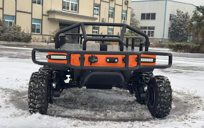 伴隨保障機(jī)器人搭載8×8 全輪驅(qū)動(dòng)底盤,配備獨(dú)立懸架與大花紋越野輪胎,可輕松應(yīng)對(duì)山地、泥濘、荒漠、雪地、叢林等復(fù)雜路況,支持原地旋轉(zhuǎn)功能,最小轉(zhuǎn)彎半徑趨近于零,在狹窄巷道、林間小道、戰(zhàn)場掩體等受限空間內(nèi)也能靈活調(diào)整位置,精準(zhǔn)跟隨保障目標(biāo),避免因地形限制掉隊(duì)。