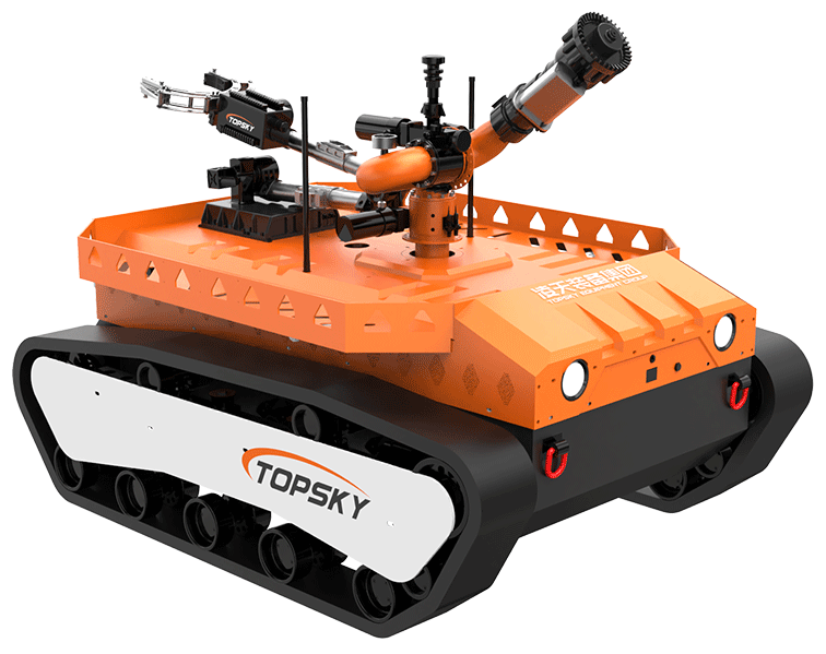 履帶式防爆機(jī)器人底盤采用鋰電池電源作為動力源,使用無線遙控的方式遠(yuǎn)距離操控,裝載7自由度排爆機(jī)械手能實(shí)現(xiàn)不同角度旋轉(zhuǎn),機(jī)械臂可裝載爆炸物銷毀器,可現(xiàn)場摧毀爆炸物,采用履帶+單擺臂結(jié)構(gòu),能適應(yīng)各種地形快速作戰(zhàn)部署。