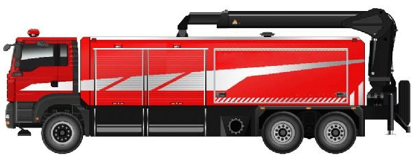 多車(chē)模塊化組合,具有1臺(tái)吸水增壓車(chē)和2臺(tái)水帶敷設(shè)車(chē)組合而成