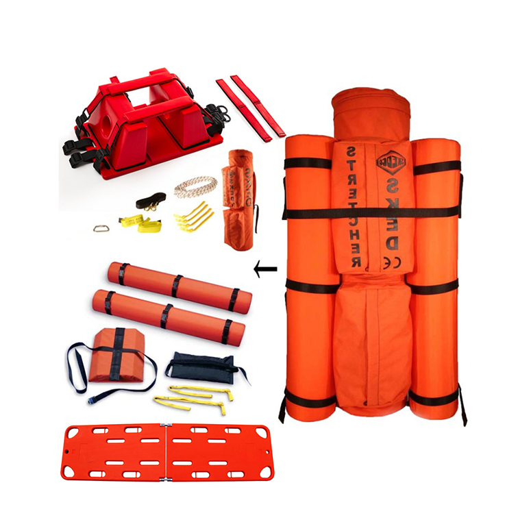 可漂浮救生擔(dān)架材質(zhì):柔韌塑料制成,強(qiáng)度高、耐磨性??捎糜谒婢仍蜕降鼐仍?;可加設(shè)固定扁帶,可防止拖拽造成損壞。高強(qiáng)度把手8個,工作負(fù)載:400kg,內(nèi)置平板式可拆卸浮力輔助系統(tǒng)和脊柱板固定系統(tǒng),方便固定傷員,配備:梅隴鎖1個(主軸拉力45kN、橫軸拉力8kN)、鋼制梨型鉤4個(主軸拉力36kN橫軸8kN)、垂直豎井提升繩1套、浮力輔助部件和脊柱板一套。擔(dān)架浮力:1.6kN。