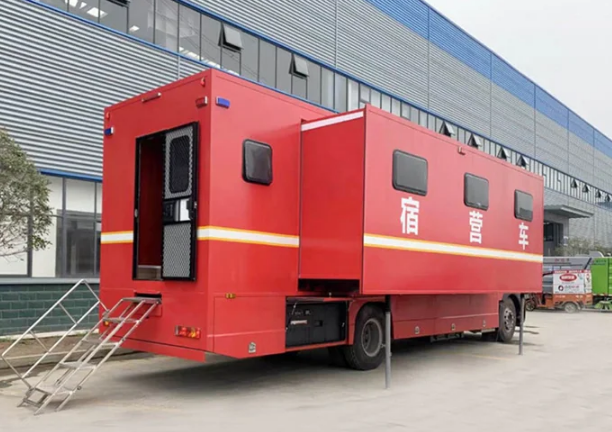3、整車自行式設(shè)計,機(jī)動性能好,適合公路運(yùn)輸,可提供野外宿營、洗漱、休閑等功能,保障能力強(qiáng);整車配有空氣調(diào)節(jié)系統(tǒng),生活舒適度好,可雙側(cè)擴(kuò)展,空間利用率大。