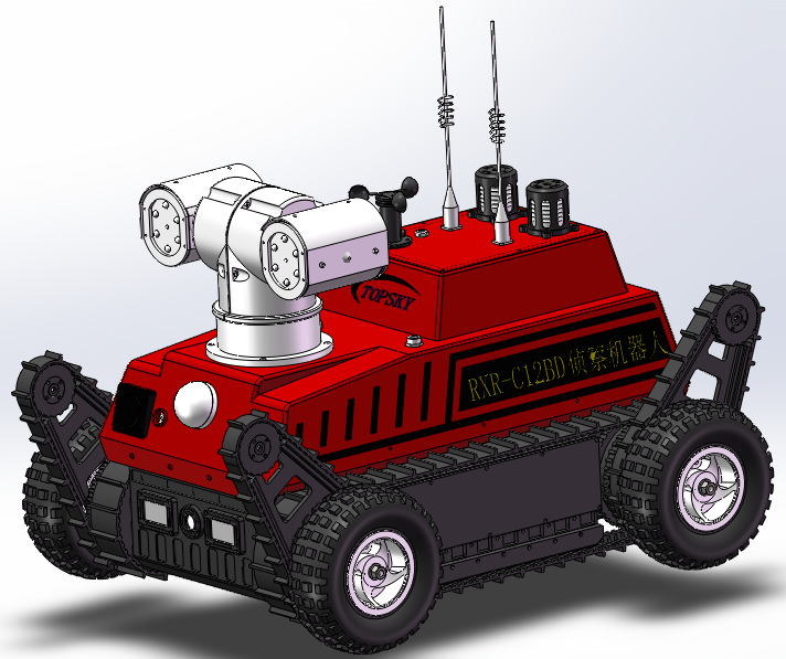 ★結(jié)構(gòu)型式:采用前后4擺臂+履帶+輪胎的結(jié)構(gòu)形式,輪胎可以最大有效提高前進(jìn)速度、履帶和擺臂適合復(fù)雜地形,可以提高越障性能。