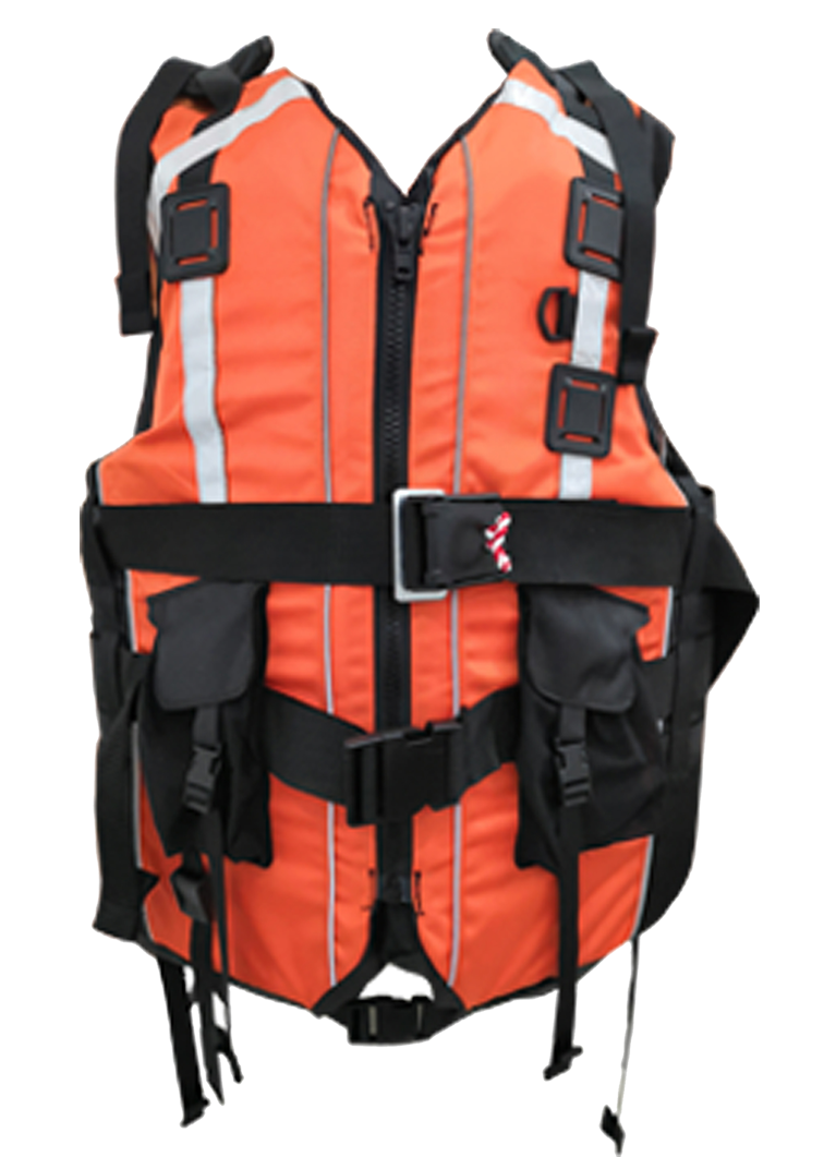 面料采用方形針織壓力點(diǎn)和1680D材質(zhì)的Cordura?面料使得該款救生衣足夠應(yīng)對(duì)復(fù)雜的水域活動(dòng)。采用背心式設(shè)計(jì),胸襟采用YKK塑鋼開口拉鏈,并使用塑料拉頭浮力片固定于布料夾層內(nèi),后領(lǐng)口增加手提式松緊提拉帶設(shè)計(jì),方便于攜帶。