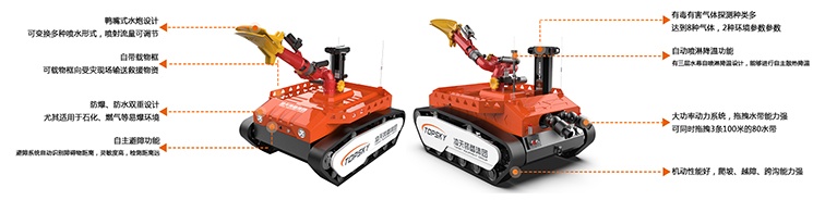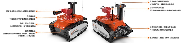 本產(chǎn)品具備滅火、音視頻偵察、有毒有害氣體偵察、災區(qū)環(huán)境偵察功能;