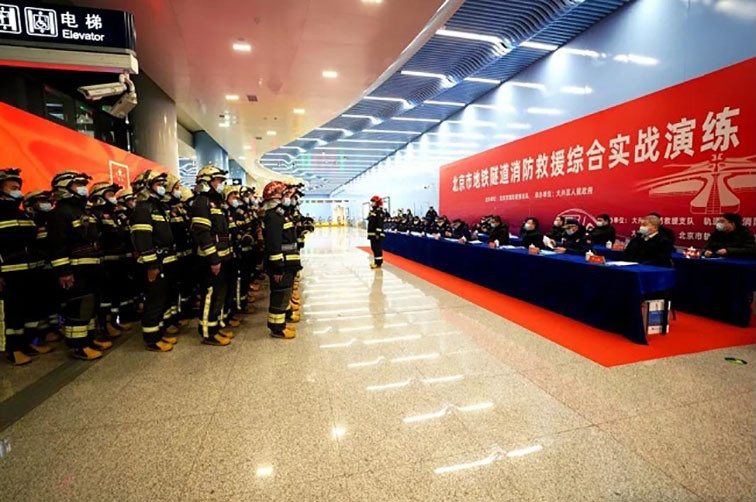 為全力做好2022年春運服務(wù)保障工作,防范化解重大安全風(fēng)險,聚焦“全災(zāi)種、大應(yīng)急”救援需要和地鐵隧道火災(zāi)滅火救援處置能力,1月21日凌晨,北京市全要素地鐵隧道火災(zāi)滅火救援綜合實戰(zhàn)演練在北京地鐵大興機場線大興新城地鐵站開展。整個演練調(diào)集了10個消防支隊、52部消防車、248名消防救援人員參與。北京凌天2臺消防內(nèi)攻偵察機器人參與到此次演練中。
