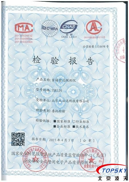 YSR-120穿墻雷達(dá)探測(cè)儀通過公安部安全與電子產(chǎn)品檢測(cè)檢驗(yàn)中心檢驗(yàn)