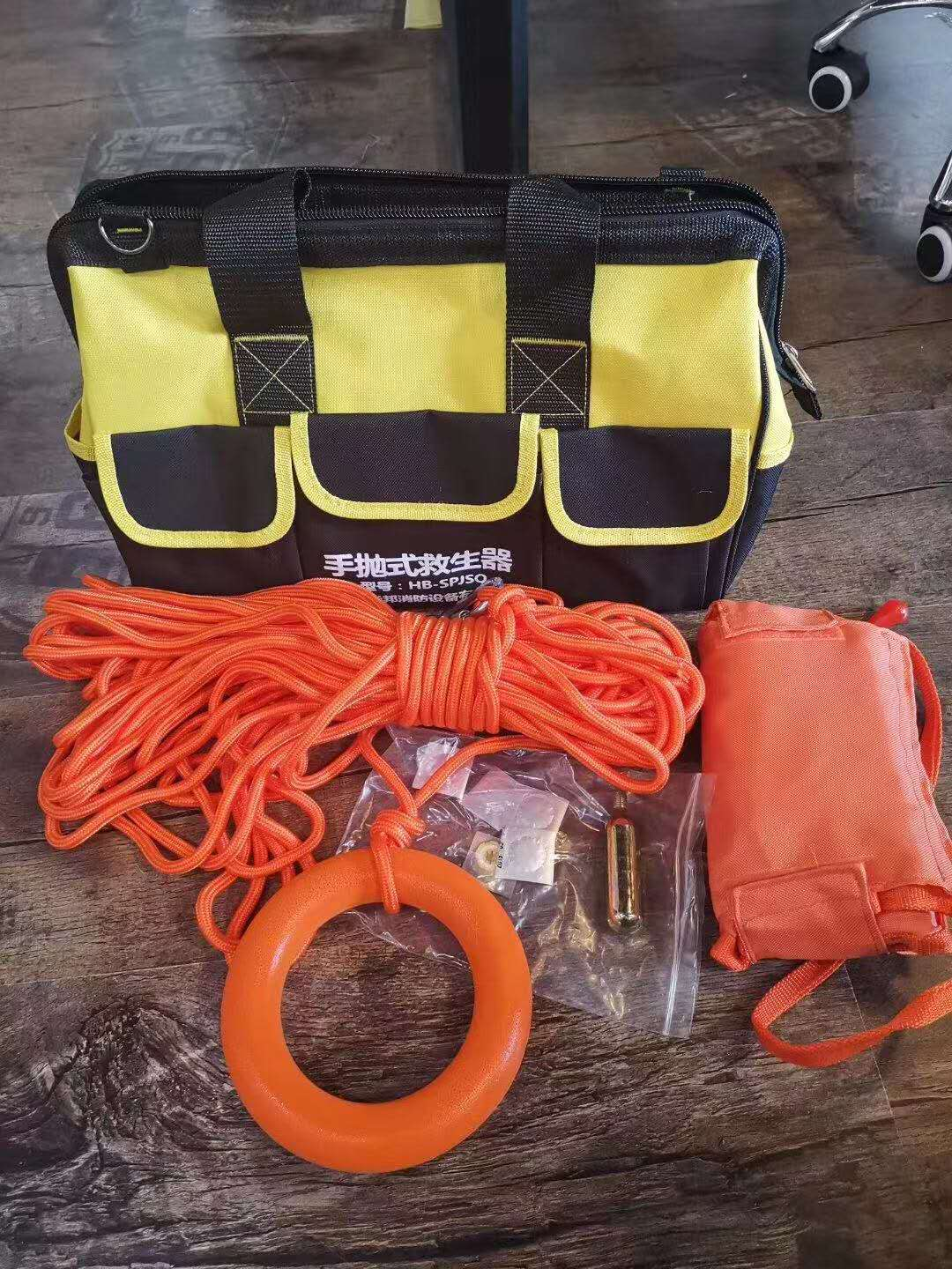 可遠(yuǎn)距離投擲,可自動(dòng)充氣。每套配置4 枚手拋彈頭,彈頭內(nèi)置自動(dòng)救生圈,每發(fā)彈頭落水2.9秒內(nèi)自動(dòng)打開形成具有浮力155N的救生圈。配置直徑8 毫米,長(zhǎng)度30米水域救生繩一根。救生圈更換配件可實(shí)現(xiàn)多次重復(fù)使用。 配置:手拋彈頭。水域救援繩。水域救援手環(huán)。安全鉤。