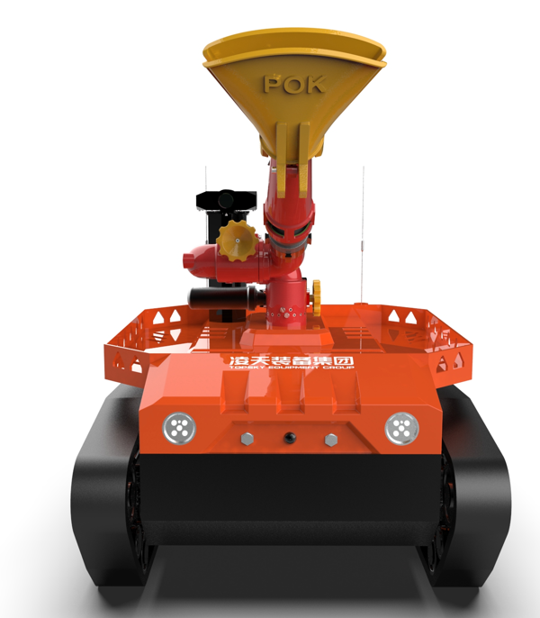 機器人采用無線遙控設(shè)計,遙控器與監(jiān)視器一體/分離,可實時的顯示電池、內(nèi)部的各種信息,機器人狀態(tài)、現(xiàn)場溫濕度、有毒有害氣體濃度報警信息等控制機器人前進(jìn)、后退、轉(zhuǎn)向等運動。具備遠(yuǎn)程偵察能力,機身搭建升降云臺、高清攝像頭、熱成像攝像頭、氣體傳感器三類環(huán)境感知設(shè)備和云臺控制設(shè)備,也可聯(lián)動聲光報警模塊提醒消防人員或群眾,有效避免危險。在通過遠(yuǎn)程偵察手段有效獲取現(xiàn)場火源信息后,機器人配備的大功率電機可以幫助消防人員將消防水袋拖拽至危險火源區(qū)域進(jìn)行滅火,并能搭載各類國內(nèi)、外的多種消防水泡,并能夠遠(yuǎn)程控制發(fā)射水或泡沫。基于所配備的拾音模塊和揚聲器模塊,拾取現(xiàn)場環(huán)境聲音,即使消防官兵未靠近消防現(xiàn)場也能夠聽到搜救現(xiàn)場的群眾呼救聲,并通過揚聲器模塊與群眾進(jìn)行現(xiàn)場對話。