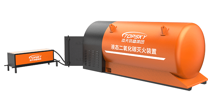 液態(tài)二氧化碳滅火裝置,采用平板車為運載平臺,搭載液態(tài)二氧化碳滅火模塊,采用液態(tài)二氧化碳為滅火劑,運輸至井下火區(qū)近附,經(jīng)自增壓調(diào)控系統(tǒng)實現(xiàn)罐內(nèi)穩(wěn)壓,并通過遠距離輸送管路將液體從罐內(nèi)向密閉火區(qū)噴射,利用其急速膨脹氣化和吸熱效率高的物理特性,可實現(xiàn)惰性降氧,吸熱降溫,吸附阻化等功能,從而可快速進行井下煤層自燃火災(zāi)的預(yù)防與撲滅等。