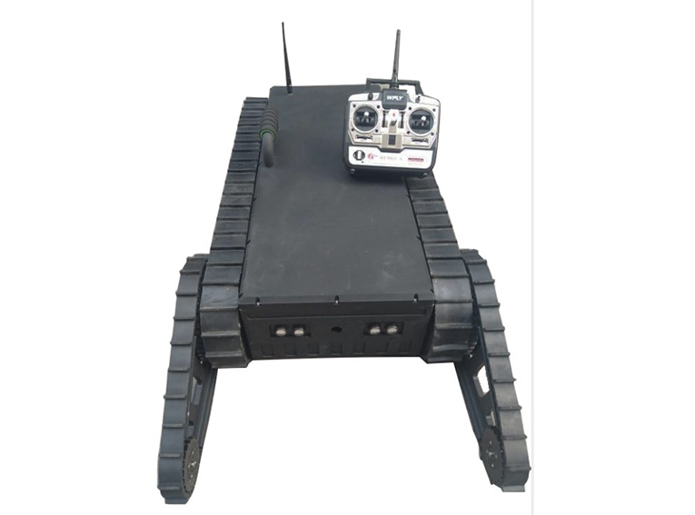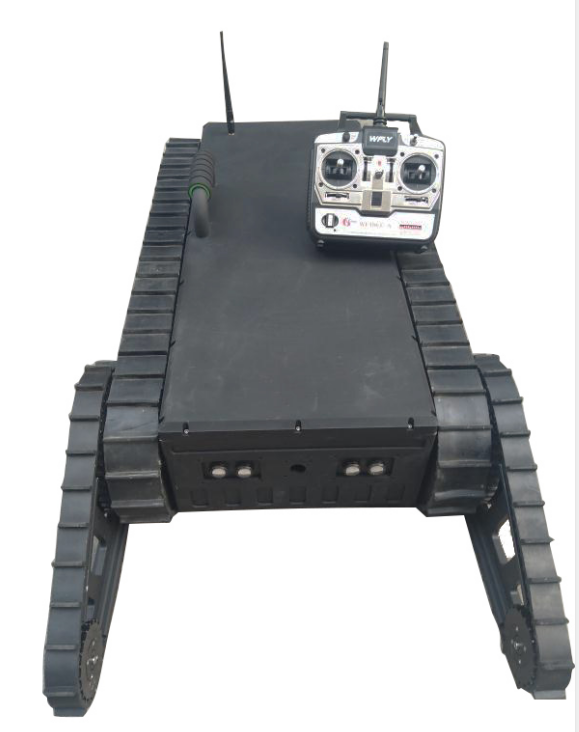 單擺臂機器人底盤車是一款通用型履帶式機器人底盤車,可滿足小型偵查類機器人越野性能及平穩(wěn)性能的超高要求,方便用戶搭接設備、擴展應用,內(nèi)部搭載高扭矩直流無刷減速電機,為底盤提供強勁動力,迎難而上,精準的底盤高度搭配合理功率的電機,采用前2擺臂+履帶的結(jié)構(gòu)形式,履帶和擺臂適合復雜地形,可以提高越障性能,且做出快速作戰(zhàn)部署。