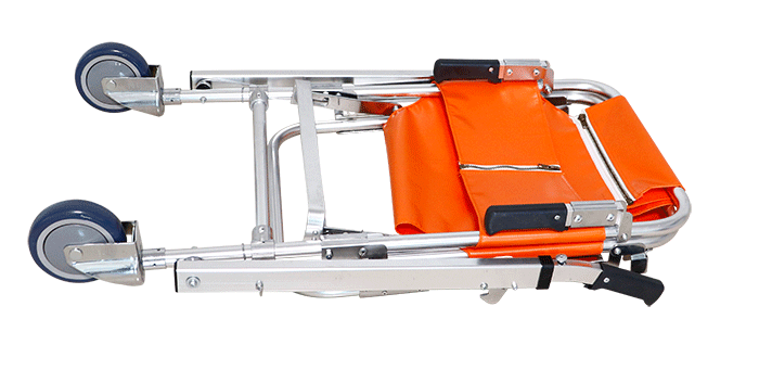 可折疊式結(jié)構(gòu)便于攜帶,用于救護骨折患者上下樓道之用。產(chǎn)品配備寬型保險帶,以保證病人在轉(zhuǎn)移過程中的安全擔(dān)架設(shè)有兩個輪子,方便于在地面的移動。擔(dān)架靠背后端設(shè)有加強把手,可承受更多重量。