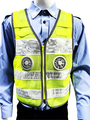 溫控警用背心(低溫型)為前開襟馬甲式樣,開襟用拉鏈拉開,前后身分別具有兩道橫向反光帶;前身胸部左右分別綴釘胸微、警號錦絲搭扣帶絨面、對講機(jī)袢、前后身兩側(cè)用錦絲搭扣及銅制四合扣連接,針對不同腰圍三檔調(diào)節(jié)肥瘦;可根據(jù)不同身高調(diào)節(jié)長短