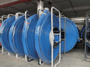 礦用高壓排水軟管采用一次性共擠成型工藝,由TPU內(nèi)襯、編織層和TPU覆蓋層組成。TPU覆蓋層阻燃、抗靜電;編織層內(nèi)含有抗靜電導(dǎo)線,TPU內(nèi)襯可通過(guò)水、泡沫液、含油或弱酸堿性等液態(tài)介質(zhì)。這種結(jié)構(gòu)使得軟管重量輕、承壓高、質(zhì)地柔軟、可卷盤、操作方便、鋪設(shè)及撤收機(jī)動(dòng)靈活。