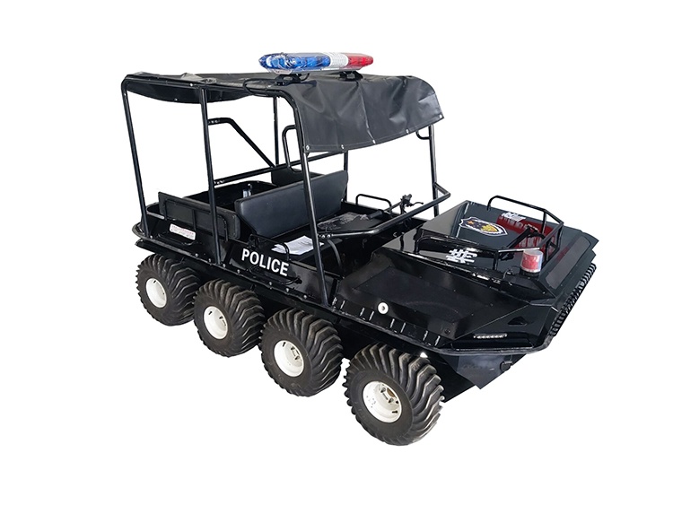 針對(duì)水災(zāi)頻發(fā)的地區(qū),水域救援任務(wù)必不可少。但往往洪澇災(zāi)害、城市內(nèi)澇往往伴隨著惡劣的天氣和崎嶇的地形,沖鋒舟需要多次搭載不同交通工具并數(shù)次轉(zhuǎn)移,水陸兩棲全地形車可以輕松通過(guò)水淹、泥濘、沼澤等環(huán)境,無(wú)需人力搬運(yùn),實(shí)現(xiàn)陸地駕駛和水中行走自由切換,以最快的時(shí)效抵達(dá)現(xiàn)場(chǎng)實(shí)施救援。