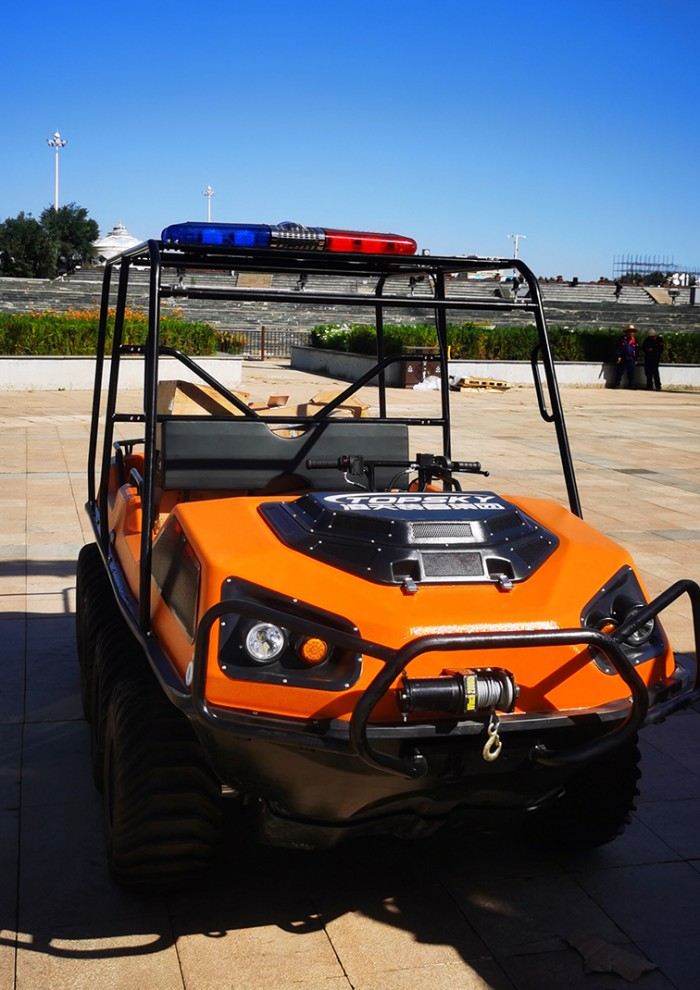 在復(fù)雜惡劣的地形條件和自然環(huán)境下,水陸兩棲全地形車可以讓搜救隊(duì)員和攜帶的救援裝備快速到達(dá)救援現(xiàn)場(chǎng),減少徒步帶來(lái)提供消耗,完成最后一公里最好五分鐘緊急救援任務(wù)。水陸兩棲全地形車可配備點(diǎn)到絞盤、救援擔(dān)架組件、探照燈、警示燈、警報(bào)器、脫鉤、破拆工具等裝備, 給救援團(tuán)隊(duì)提供救援保障,更安全的解救傷員和疏散群眾。