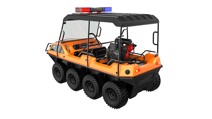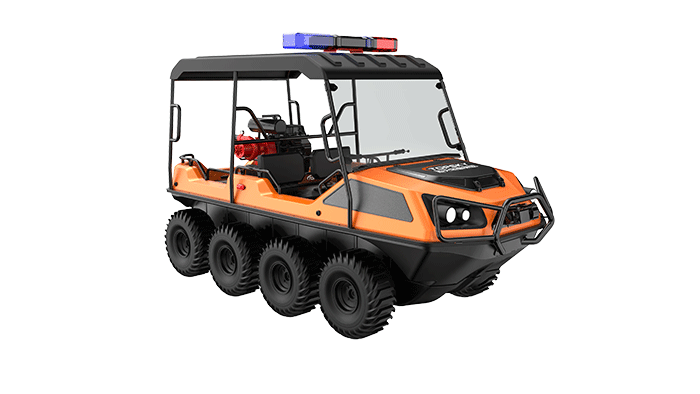 在復(fù)雜惡劣的地形條件和自然環(huán)境下,森林消防水陸兩棲全地形車可以讓搜救隊(duì)員和攜帶的救援裝備快速到達(dá)救援現(xiàn)場(chǎng),減少徒步帶來提供消耗,完成最后一公里最好五分鐘緊急救援任務(wù)。森林消防水陸兩棲全地形車可配備點(diǎn)到絞盤、救援擔(dān)架組件、探照燈、警示燈、警報(bào)器、脫鉤、破拆工具等裝備, 給救援團(tuán)隊(duì)提供救援保障,更安全的解救傷員和疏散群眾。