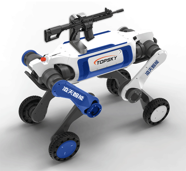 武裝打擊輪足機(jī)器狗主要用于軍事和邊防領(lǐng)域,具備攻擊和防御能力,應(yīng)用場(chǎng)景廣泛。