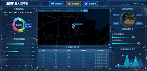 消防機器人云平臺集機器人分布、機器人統(tǒng)計、視頻、氣體、語音、控制等集成于一體,做到全局把控、機器人監(jiān)測、全生命周期綜合使用及可視化操作。當(dāng)遇到突發(fā)事件時,能在線直觀的分析并高效的了解到設(shè)備實時狀態(tài)。