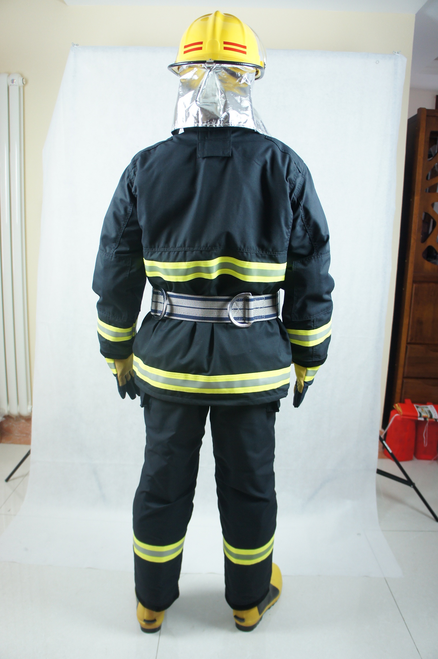 消防員在滅火戰(zhàn)斗時穿著的防護服裝。該服裝是根據(jù)GA10-2014的標(biāo)準(zhǔn)要求設(shè)計、生產(chǎn)的(該服裝符合GA10-2014的標(biāo)準(zhǔn)要求),并通過了國家消防裝備質(zhì)量監(jiān)督檢驗中心的檢測??捎糜诖┲鹱鳂I(yè)防止熱量對人體的侵害,是滅火作業(yè)時基本、適宜的個人防護裝備