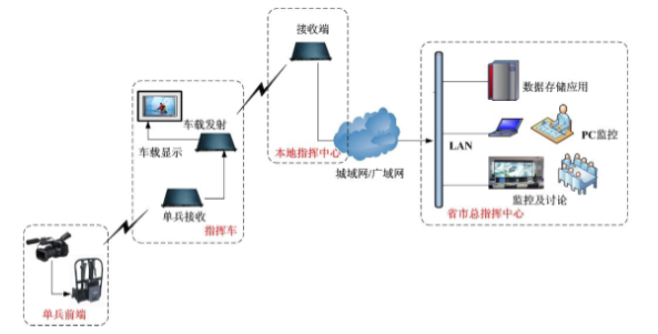 可做單兵發(fā)射-指揮監(jiān)控車或單兵發(fā)射-指揮監(jiān)控中心等應(yīng)用。