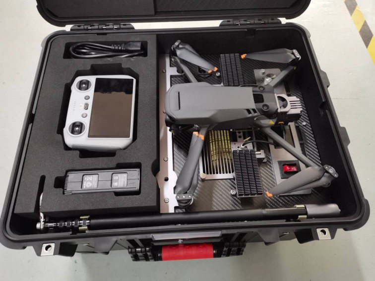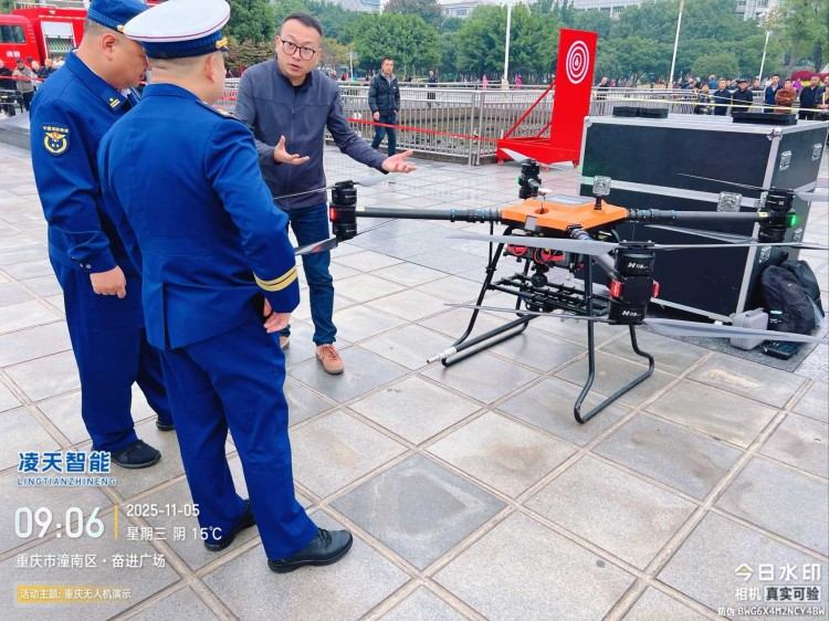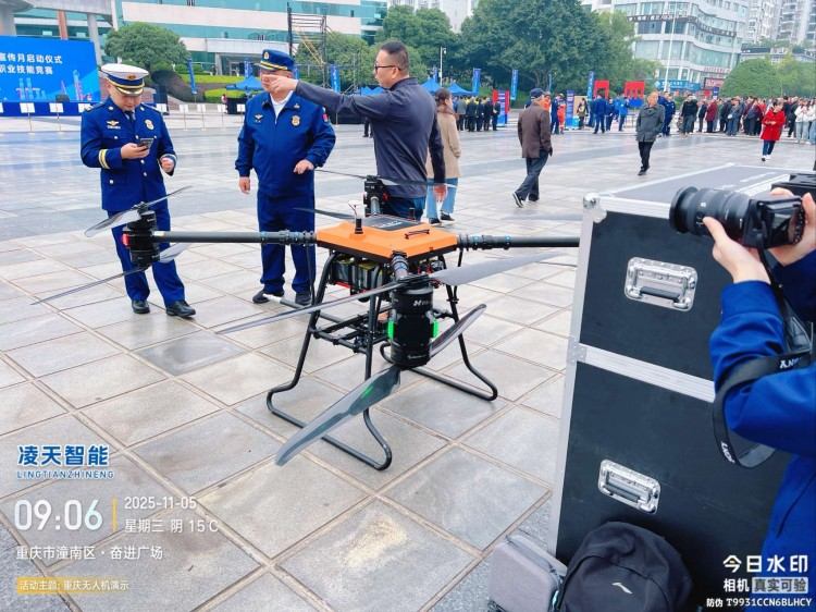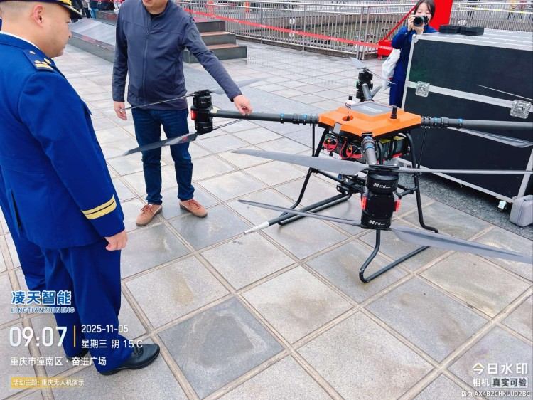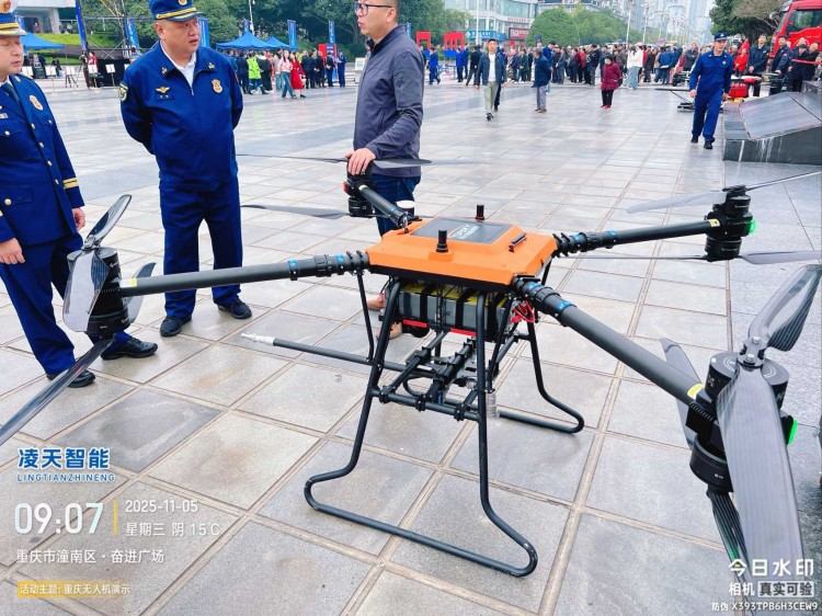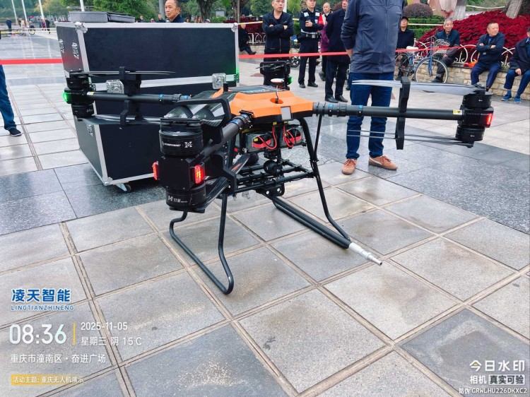 本無人機為北京凌天智能裝備集團研發的陸空兩棲三維偵測建模無人機,采用四旋翼機身設計,載重大,續航長,并且機體折疊標準化負載接口。同時,該無人機具備陸空兩棲功能,可以在地面行駛。
