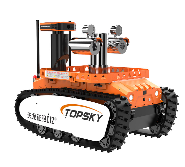 主要功能:履帶式防爆機(jī)器人底盤采用鋰電池電源作為動力源,使用無線遙控的方式遠(yuǎn)距離操控,可搭載形式多樣,原地旋轉(zhuǎn)設(shè)計(jì)可使得運(yùn)更靈活;具備音視頻偵察、有毒有害氣體偵察、災(zāi)區(qū)環(huán)境偵察功能,對提高救援安全性、減少人員傷亡具有重要意義。