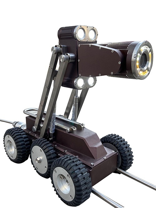 針對煤礦井下發(fā)生事故后,救援人員不能及時了解現(xiàn)場情況的問題,設(shè)計并研制了一種鉆孔救援機器人,該產(chǎn)品是由爬行器(攝像頭)、鉆孔自動(手動)盤線車、無線系統(tǒng)控制器 (電腦端)、電源適配器等部分組成,通過操作主控制機器人界面,可實現(xiàn)控制爬行器在孔內(nèi)行走,并將釆集到的救援孔內(nèi)部圖像通過線纜實時傳輸?shù)街骺刂破鬟M行實時監(jiān)視,配合判圖軟件一鍵生成檢測報告。檢測系統(tǒng)還配有專業(yè)的控制軟件,可運行在windowslO系統(tǒng)上控制本套檢測機器人??蛇M行圖像存儲。監(jiān)視圖像時如果發(fā)現(xiàn)人與物體,可以通過錄像或拍照記錄出來以便對其判斷、分析。在主控制器的顯示界面上,可以隨時了解爬行器的狀態(tài),包括傾角、氣壓、距離、速度、平臺高度、日期等相關(guān)信息。該裝置也可用于其他地質(zhì)鉆井探測中,基于礦山鉆孔救援探測需求,針對現(xiàn)有探測機器人信息探測范圍窄、探測距離較短、功能單一、無越障能力等問題,設(shè)計出礦山鉆孔救援探測機器人。